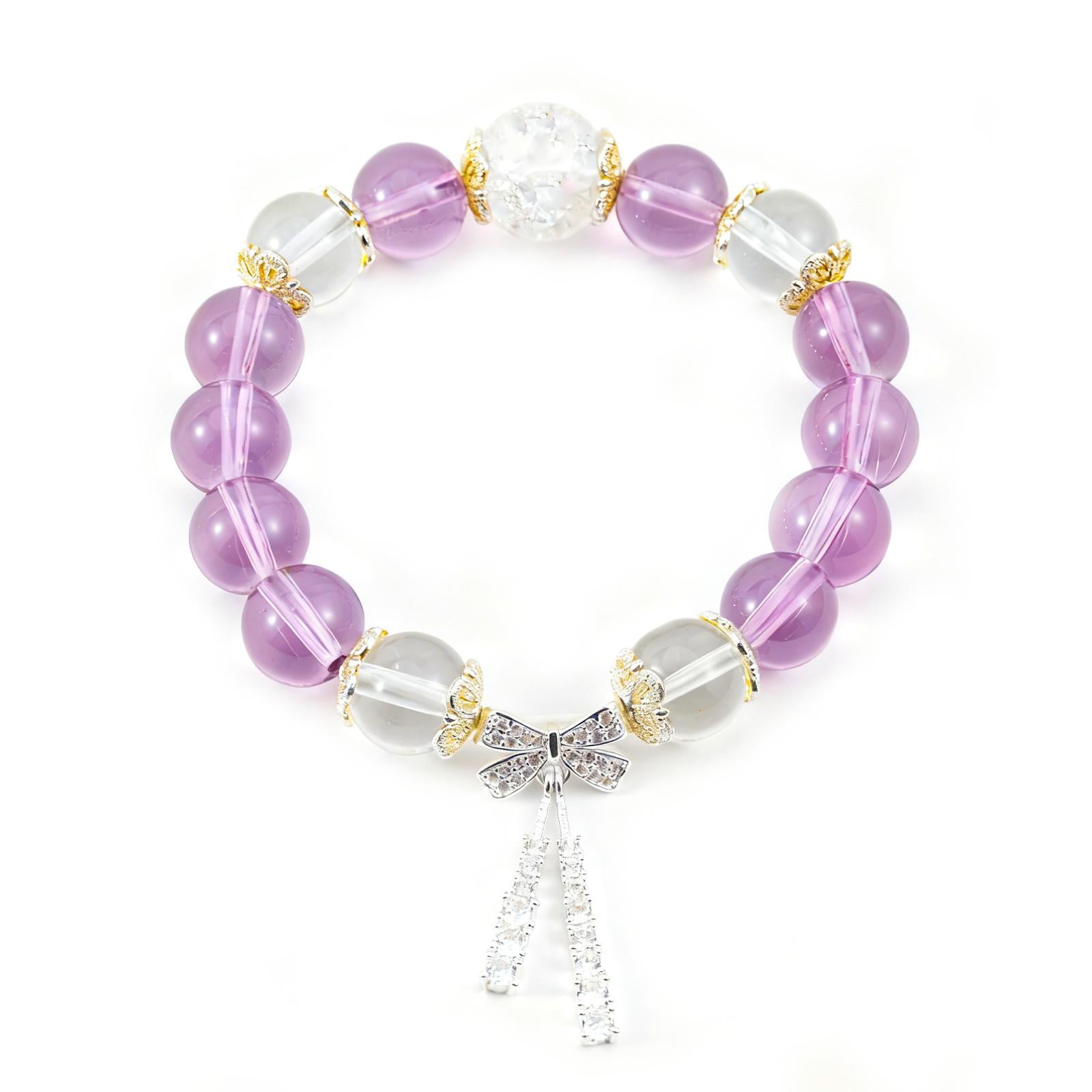 Amethyst & Silver Crystal Bracelet with Bow Charm-Elegance, Confidence & Healing Energy